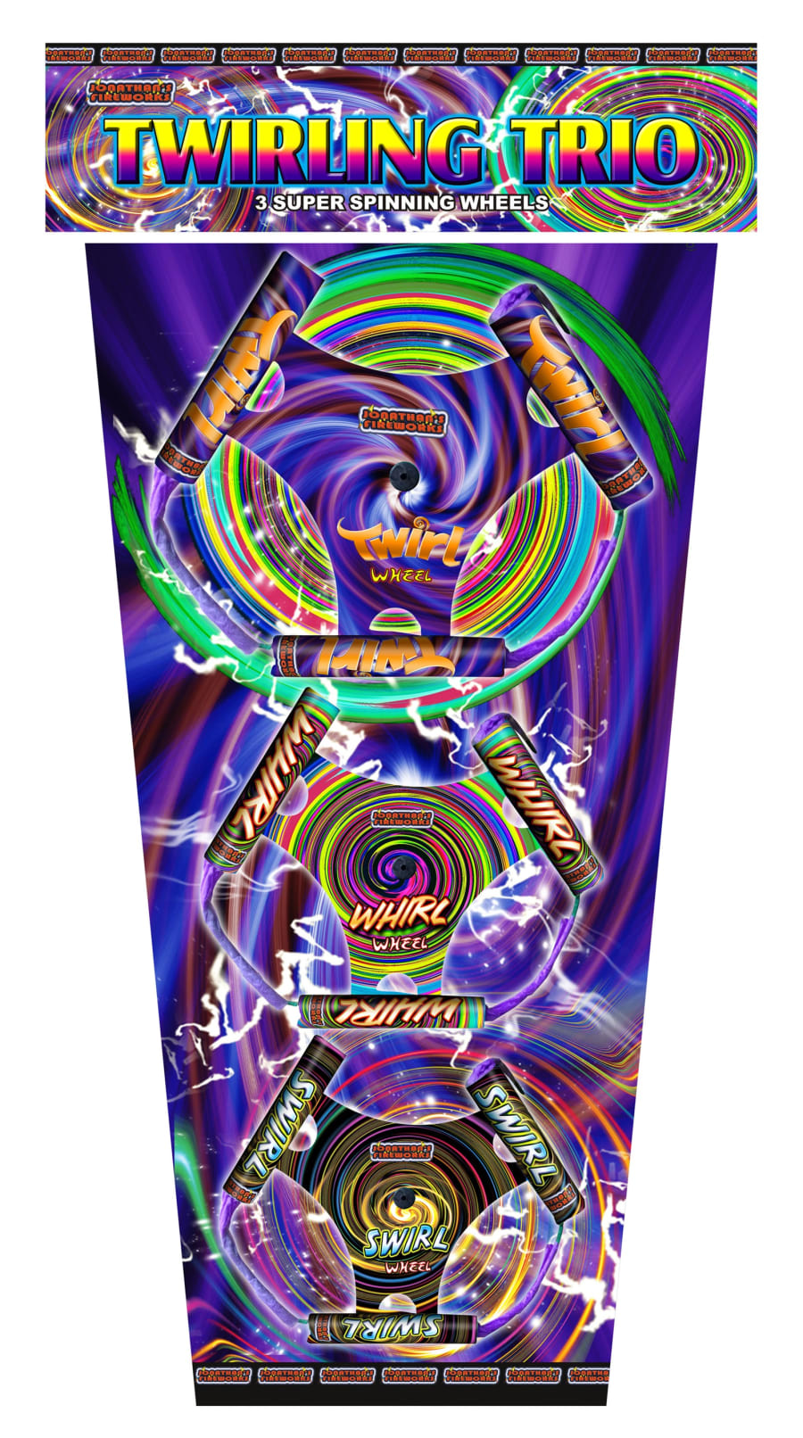 A superb pack of three medium-sized wheels, each powered by three drive motors. They feature multicoloured sparks and finish with a beautiful flitter effect. Low noise!