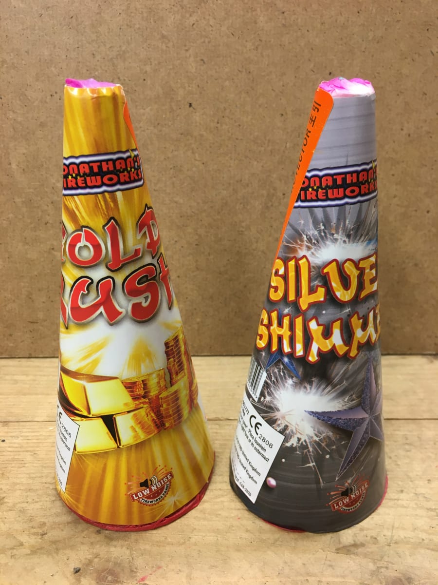 Our 6' fountains are the perfect addition to your fireworks display! This long-lasting cone fountain is designed to captivate your audience with its stunning display of gold / silver sparks. Whether you choose the shimmering silver or the radiant gold, both options are sure to add a touch of elegance and excitement to your festivities.