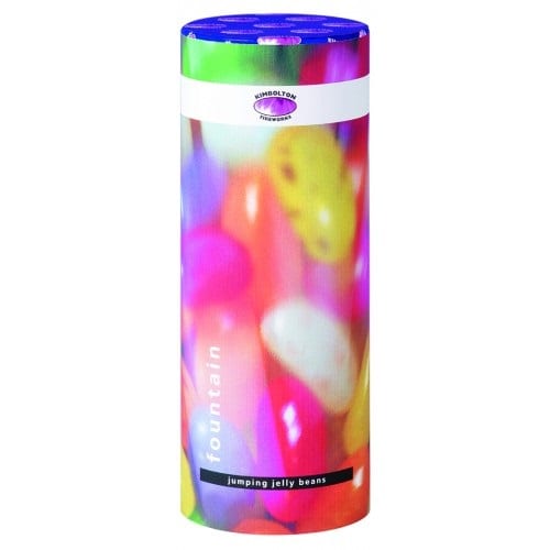 Fountain of stunning yellow, blue, purple & red glowing beans fired like a fountain, and still low. It's quiet, very pretty and the kids love it! The only one we have seen like this.