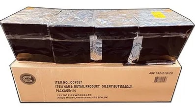 This low noise compound cake starts with a beautiful double height display of a Z firing pattern of crackling comets then continues on to show off a vast array of effects and colours, such as horsetails, a V firing pattern & multi coloured strobes. A very impressive display for a low noise firework - does also contain crackle.