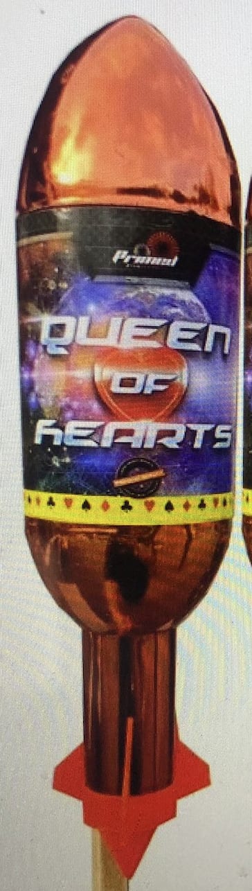 The Queen of Hearts rocket is a single shot rocket which bursts into a beautiful and vibrant bright red heart - these are hard to come by because they are so popular!