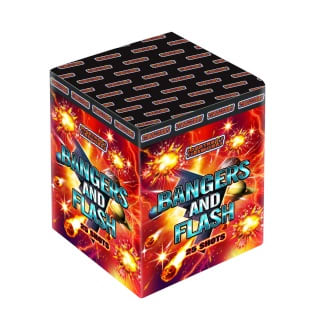 This is an intense crackling mine with blue and golden brocade bursts above ending with a busy multi-shot crackling finale. Would be a nice finale cake for a small selection box or a great addition to a medium size display.