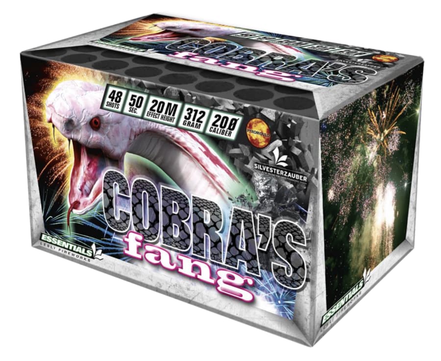 Cobra's Fang is a great addition to your firework display, multicoloured shots with blinking bursts, brocades, bangs & cracking dragons eggs.